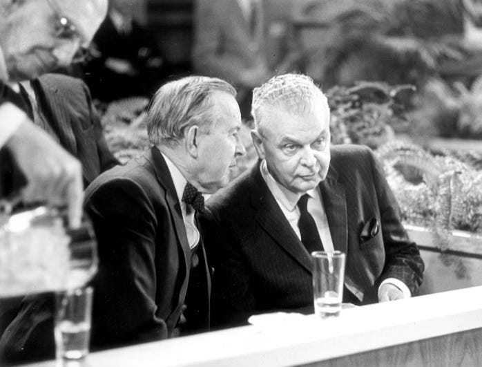 (Former prime ministers Lester B. Pearson and John George Diefenbaker at a federal-provincial conference in 1969 [John McNeill/The Globe & Mail])