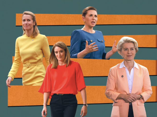 Kaja Kallas, Roberta Metsola, Mette Frederiksen and Ursula von der Leyen by Dato Parulava/POLITICI & Getty Images