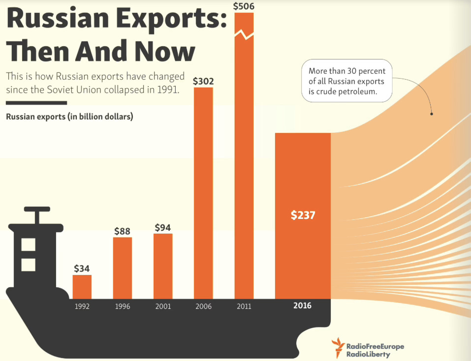 What was Gorbachev’s legacy? Mainly a reinvigorated Russian export sector, which grew even more rapidly after privatization under Yeltsin. Exports peaked before the 1998 Russian financial crisis, reached a second peak prior to the 2008 global financial crisis of 2008 — then dropped after Russia’s first 2014 invasion of Ukraine. Russia’s vast oil, gas, metal and fertilizer revenues still fund its genocidal war machine, which has been pounding Ukrainian civilians and territory for twelve years.