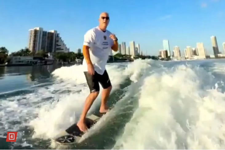 (Putin envoy Kirill Dmitriev wake-boarding in Miami on Sunday, December 28th, 2025 — just ahead of Ukrainian president Zelenskyy’s talks with Trump)