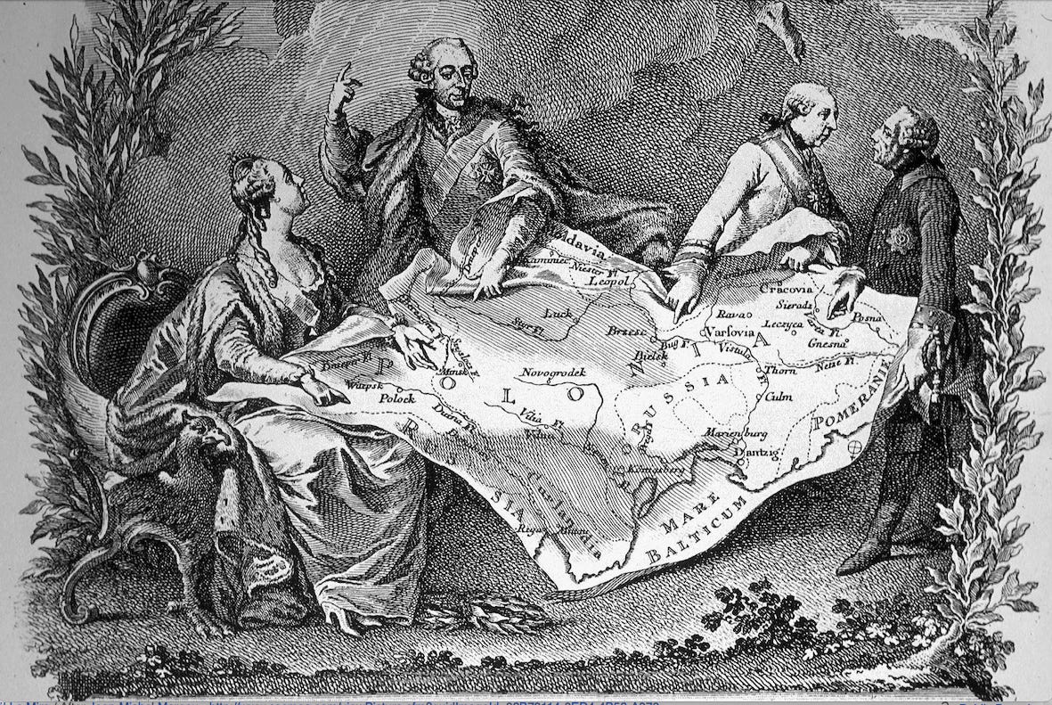(An allegory of Catherine II of Russia, Joseph II of Austria and Frederick the Great of Prussia negotiating the first partition of Poland in 1772)