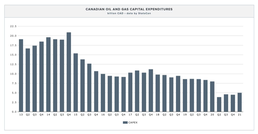 (Capital expenditure in Canadian oil and gas from 2013 to 2021)