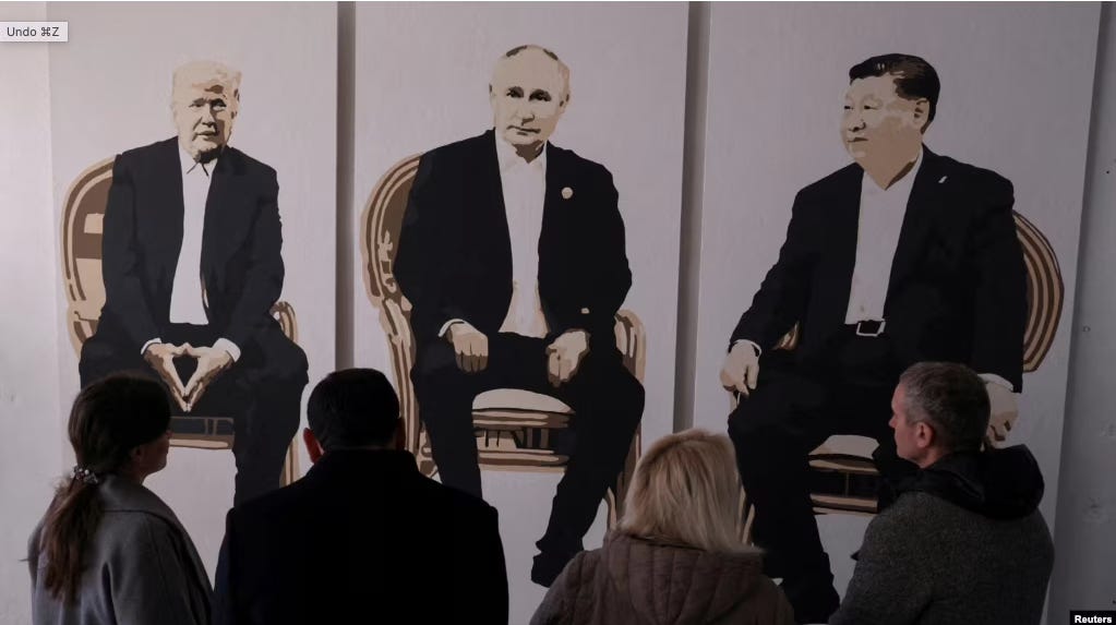 After destroying Ukraine with help from China, North Korea and Iran, Moscow dreams of re-dividing the world into spheres of influence, as Stalin did at Yalta with Churchill and Roosevelt. On Yalta’s recent anniversary, there was an art exhibition in occupied Crimea, near where the ‘big three’ had met, with this: