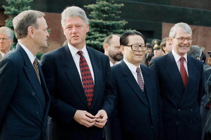 (Clinton and Chrétien with China’s Jiang and the UK’s John Major on Red Square)
