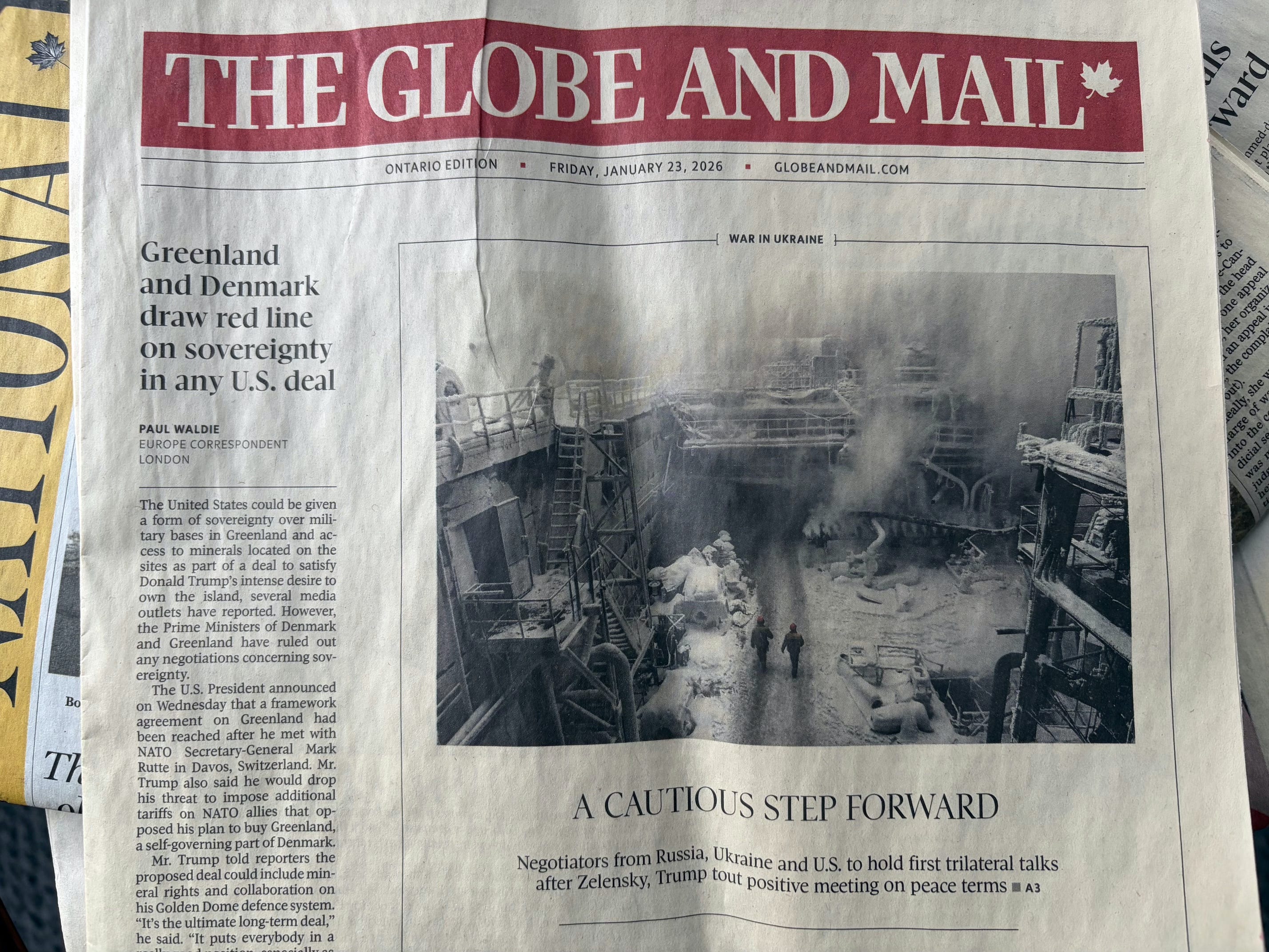 (Front page of the Toronto Globe & Mail on January 23rd, 2026)